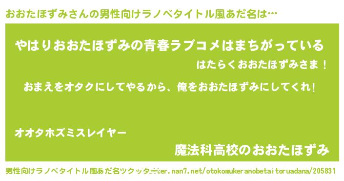 | 胡散臭い通販商品みたいなあだ名 | 『100人中100人が認めたマグネット磁石…その名も「おおたほずみ」』 |