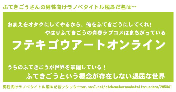 | 胡散臭い通販商品みたいなあだ名 | 『億万長者になれる霊験あらたかなお札…その名も「ふてきごう」』 |