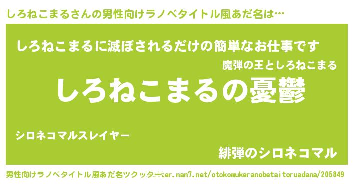 | 女子向けラノベタイトル風あだ名 | 『(仮)しろねこまるのやんごとなき事情』 |