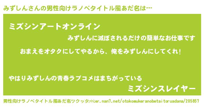| ヘコむあだ名 | 『みずにゅー』『酢こんぶ』『みずお』 |