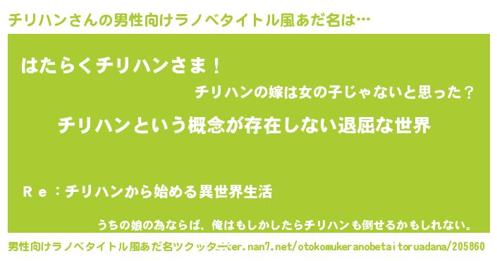 | 意味不明あだ名 | 『永久保存チリハン』『自称チリハン』 |