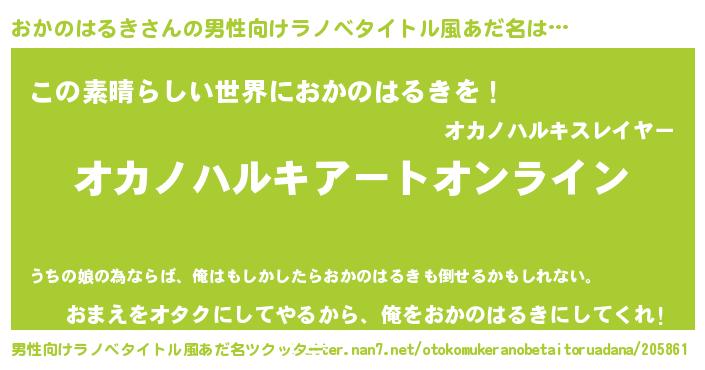 | 女子向けラノベタイトル風あだ名 | 『誰かこのおかのはるきを説明してください! ~契約から始まるウェディング~』 |