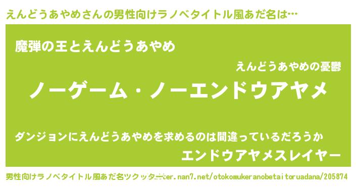 | 女子向けラノベタイトル風あだ名 | 『えんどうあやめ恋絵巻』 |