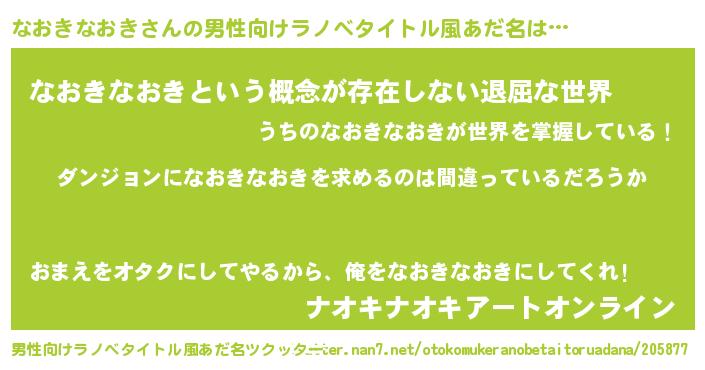 | 女子向けラノベタイトル風あだ名 | 『なおきなおきは平凡を望む』 |