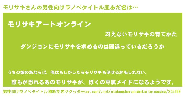 | 女子向けラノベタイトル風あだ名 | 『モリサキの卵を拾いまして』 |