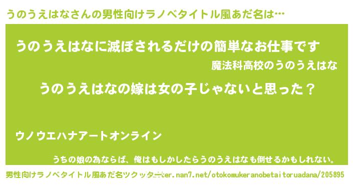 | 意味不明あだ名 | 『とにかく怪しいうのうえはな』 |
