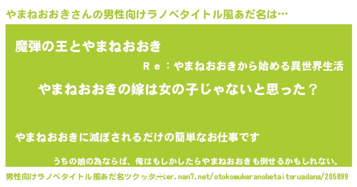| 女子向けラノベタイトル風あだ名 | 『やまねおおきの卵を拾いまして』 |