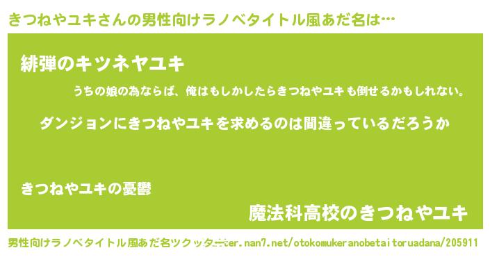 | 女子向けラノベタイトル風あだ名 | 『きつねやユキは平凡を望む』 |