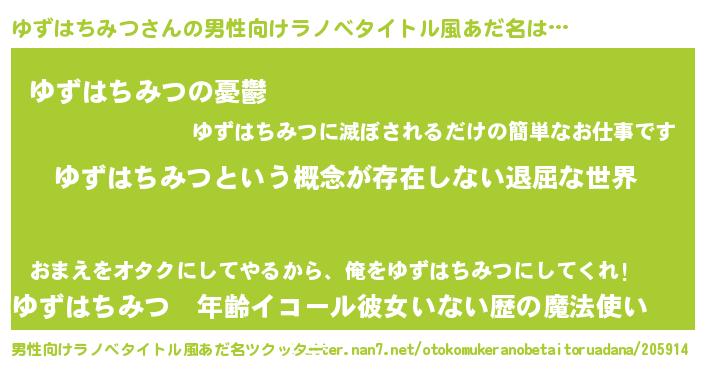 | ヒーロー風カッコイイあだ名 | 『ネオユズハチミツ』『魔戒騎士ユズ』 |