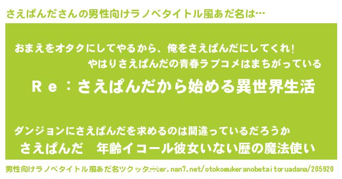 | 意味不明あだ名 | 『自称さえぱんだ』 |