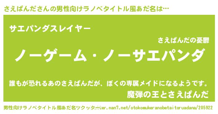 さえぱんださんの男性向けラノベタイトル風あだ名をツクッター!