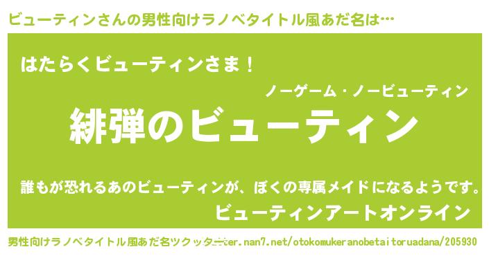 | 胡散臭い通販商品みたいなあだ名 | 『必ず成功するブレスレット…その名も「ビューティン」』 |