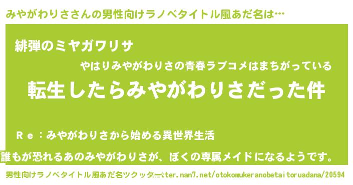 | 胡散臭い通販商品みたいなあだ名 | 『来世でも幸せになれる健康食品…その名も「みやがわりさ」』 |