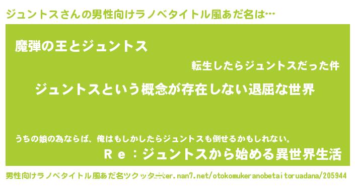 ジュントスさんの男性向けラノベタイトル風あだ名をツクッター!