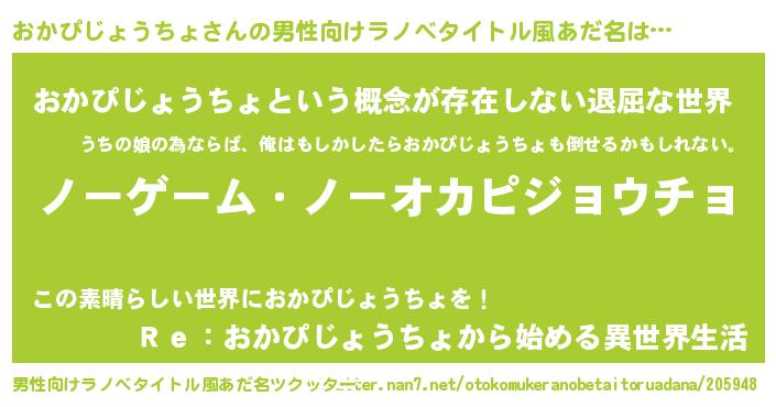 | 女子向けラノベタイトル風あだ名 | 『おかぴじょうちょ恋絵巻』 |