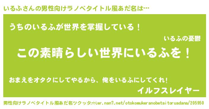 | 女子向けラノベタイトル風あだ名 | 『悪役いるふに転生したようですが、知った事ではありません』 |