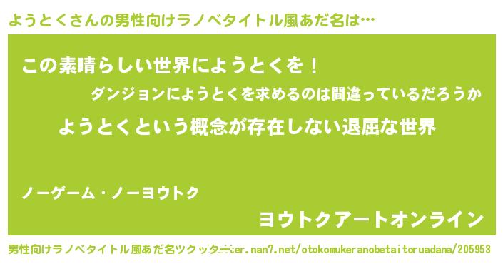 ようとくさんの男性向けラノベタイトル風あだ名をツクッター!