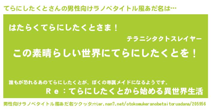 | 伝説のあだ名 | 『古文書に記された勇者てらにしたくと』 |