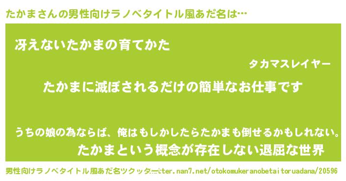 | 意味不明あだ名 | 『永久保存たかま』『なめこ科たかま属』 |