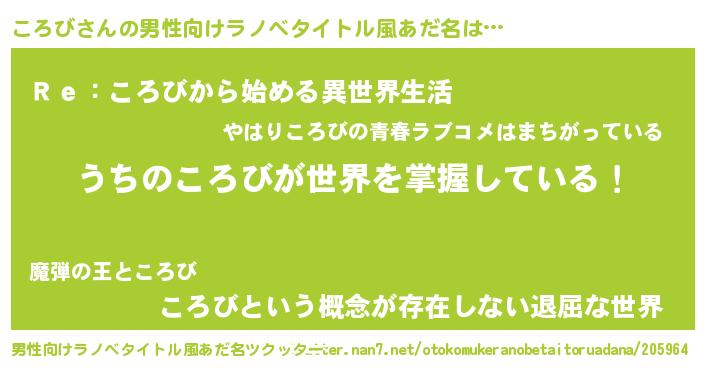 | 意味不明あだ名 | 『自称ころび』『永久保存ころび』 |