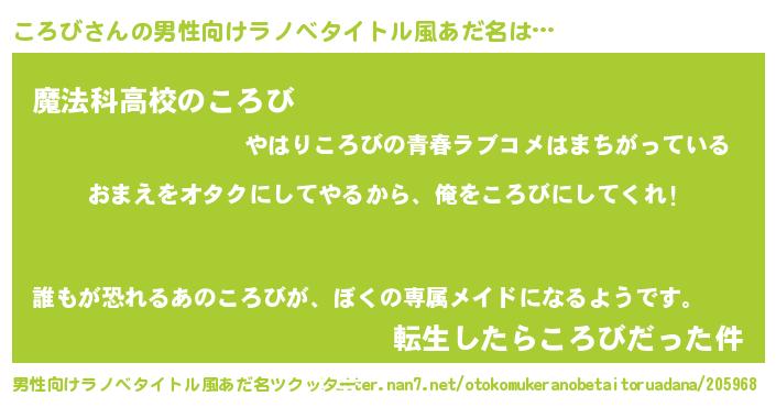 | 女子向けラノベタイトル風あだ名 | 『ころび夫妻のなれそめ』 |