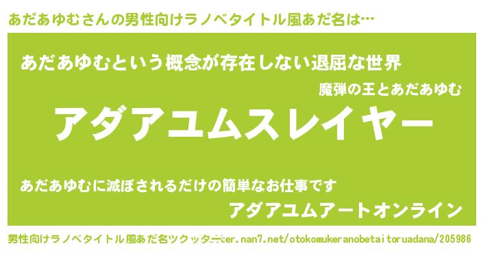 | ヒーロー風カッコイイあだ名 | 『ネオアダアユム』『スーパーアダアユム』 |