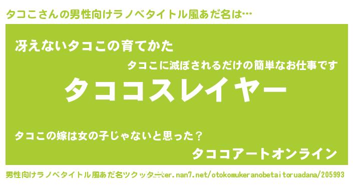 | ヒーロー風カッコイイあだ名 | 『スーパータココ』『魔戒騎士タコ』 |