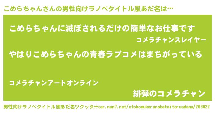 | ファンタジー風あだ名 | 『エターナルコメラチャンー』 |