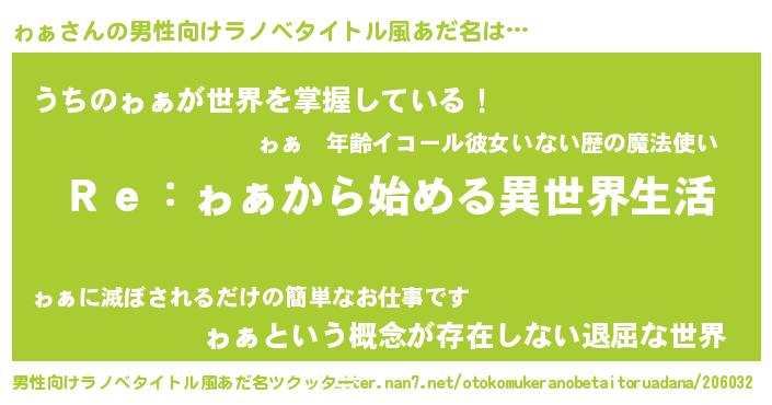 | 女子向けラノベタイトル風あだ名 | 『闇のゎぁ』『男装ゎぁの憂鬱な任務』 |