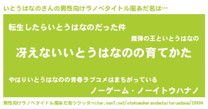 | 女子向けラノベタイトル風あだ名 | 『男装いとうはなのの憂鬱な任務』 |