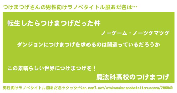 | 女子向けラノベタイトル風あだ名 | 『つけまつげは平凡を望む』 |