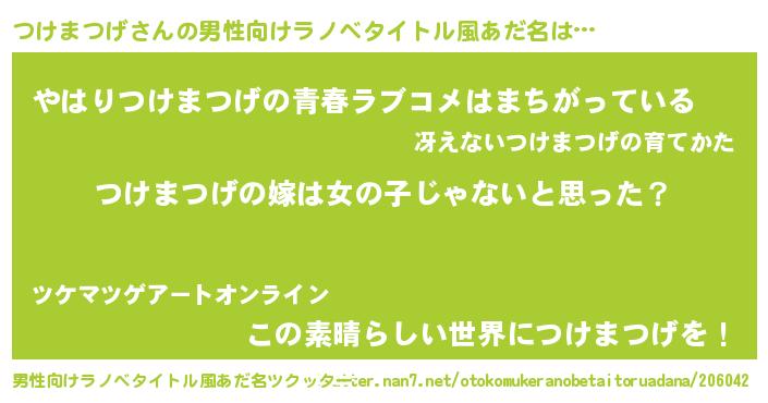 | 女子向けラノベタイトル風あだ名 | 『つけまつげ様がみてる』 |