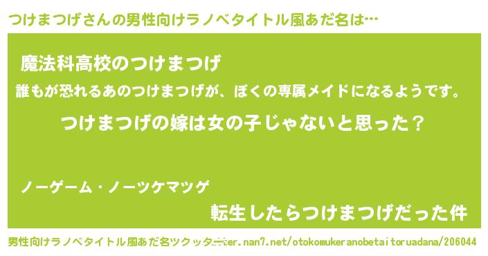 | 女子向けラノベタイトル風あだ名 | 『つけまつげ様がみてる』 |