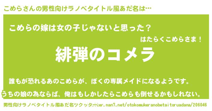 | 女子向けラノベタイトル風あだ名 | 『シンデレラこめら家の靴箱館』 |