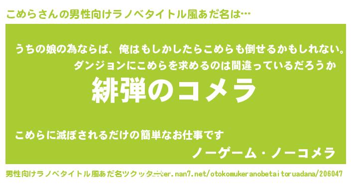 | 女子向けラノベタイトル風あだ名 | 『シンデレラこめら家の靴箱館』 |