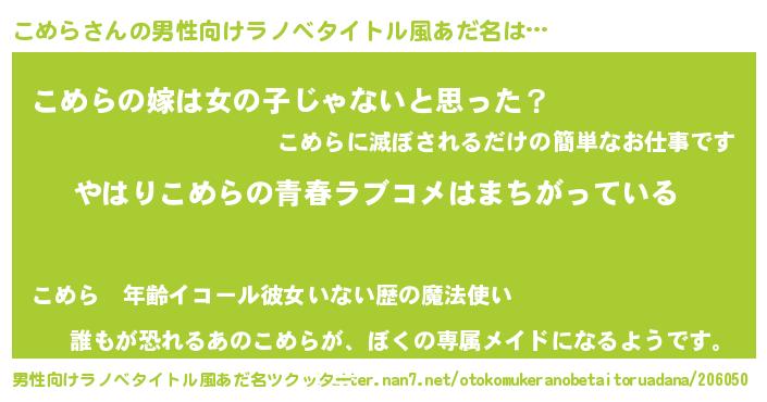 | 女子向けラノベタイトル風あだ名 | 『こめらの雑貨屋さん』 |