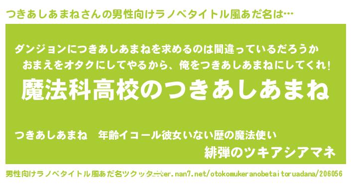 つきあしあまねさんの男性向けラノベタイトル風あだ名をツクッター!