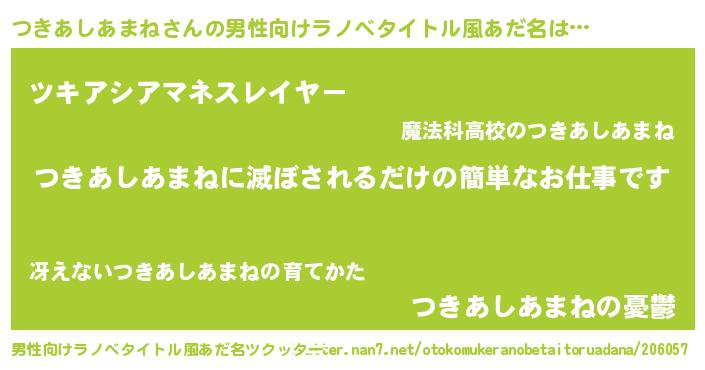 | ヘコむあだ名 | 『つきにー』『つきあしあまね(笑)』 |