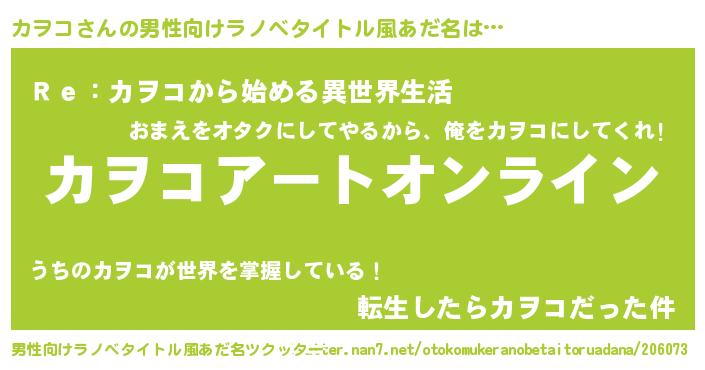 | 胡散臭い通販商品みたいなあだ名 | 『億万長者になれるブレスレット…その名も「カヲコ」』 |