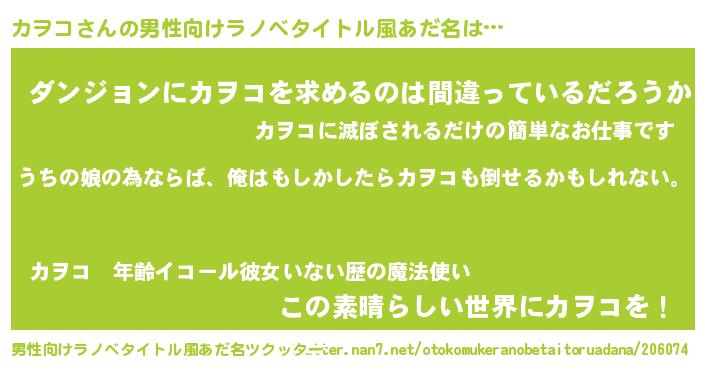 | 胡散臭い通販商品みたいなあだ名 | 『運命の人と巡り会える高級そうな壺…その名も「カヲコ」』 |