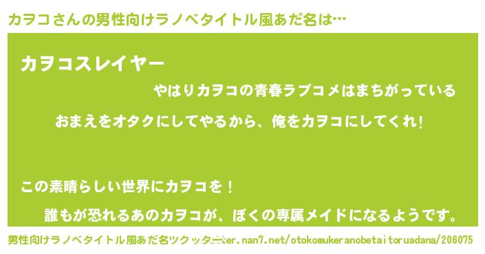 | 女子向けラノベタイトル風あだ名 | 『カヲコ夫妻のなれそめ』 |