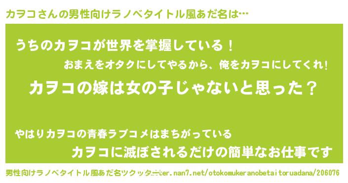 | 女子向けラノベタイトル風あだ名 | 『カヲコ様がみてる』『カヲコ恋絵巻』 |