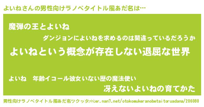 | ヘコむあだ名 | 『よいね(小並感)』『よいお』 |