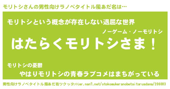 | ことわざ | 三つ子の魂100まで『三つ子の魂モリトシまで』 |