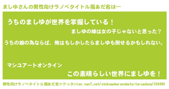 | ヒーロー風カッコイイあだ名 | 『ウルトラましゆマン』『仮面マシダー』 |