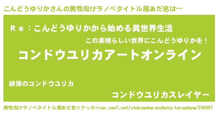 | 女子向けラノベタイトル風あだ名 | 『誰かこのこんどうゆりかを説明してください! ~契約から始まるウェディング~』 |