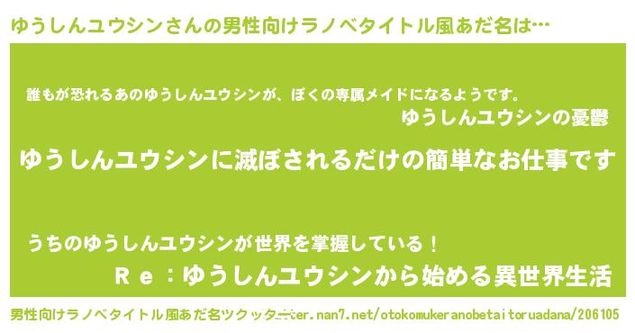 | 胡散臭い通販商品みたいなあだ名 | 『前代未聞の健康食品…その名も「ゆうしんユウシン」』 |