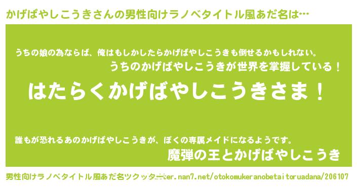 | 意味不明あだ名 | 『かげばやしこうきフォーエバー』 |