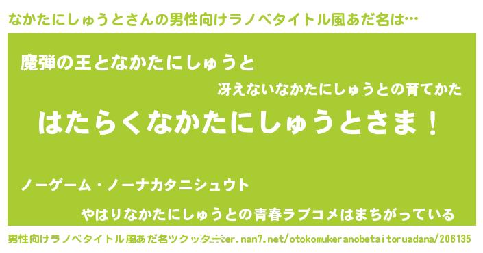 | 意味不明あだ名 | 『住所不定無職なかたにしゅうと(14歳)』 |