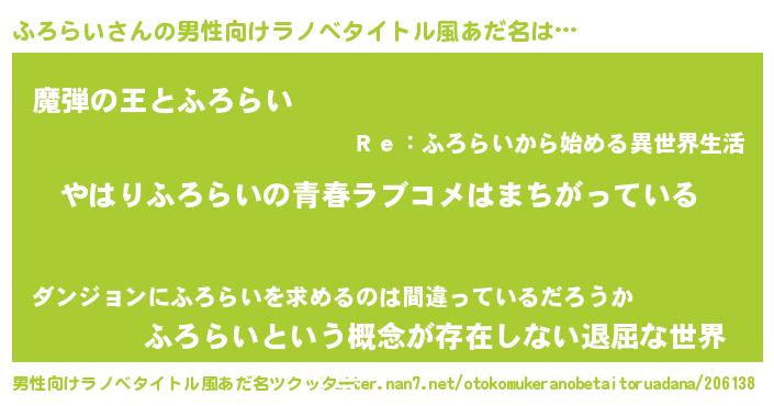 | 意味不明あだ名 | 『ふろらいフォーエバー』『自称ふろらい』 |